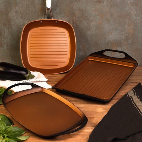 San Ignacio Altea – Batería de Cocina 8 Piezas Acero Inoxidable Inducción, 1 Pieza 16 x 9.5 cm, 1 Pieza 16 cm, 1 Pieza 18 x 10.5 cm, 1 Pieza 20 x 11.5 cm, 1 Pieza 24 x 13.5 cm, Asas y Pomos en Cobre