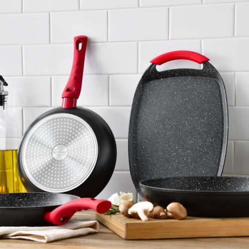 Renberg Tasty – Sartén 18 x 3.8 cm, Aluminio Prensado Inducción, Gran Durabilidad, Revestimiento Interior Multiclad, Lavar a Mano, con Mango «Soft Touch» Resistente al Calor con Detalle Rojo