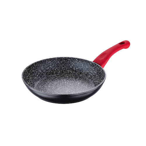 San Ignacio Toledo – Sartén 22 cm, Aluminio Forjado, Inducción, Recubrimiento Interior de Mármol Antiadherente, Resistente y Duradera, Rápida Distribución del Calor, Mango «Soft Touch» en Rojo