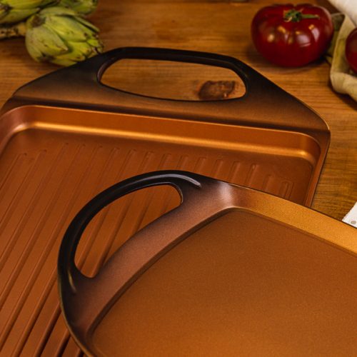 San ignacio Origen Sartén Doble Grill 26 Cm Aluminio Fundido Cobre