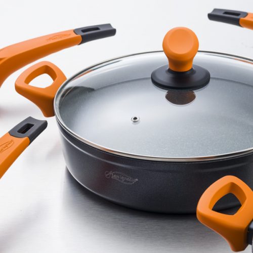 San Ignacio Lava – Sartén 28 x 5.3 cm, Aluminio Forjado Inducción, Revestimiento Antiadherente Reforzado con Quantanium de Whitford, Resistente, Base Aluminio Encapsulado, Mango Soft Touch Naranja