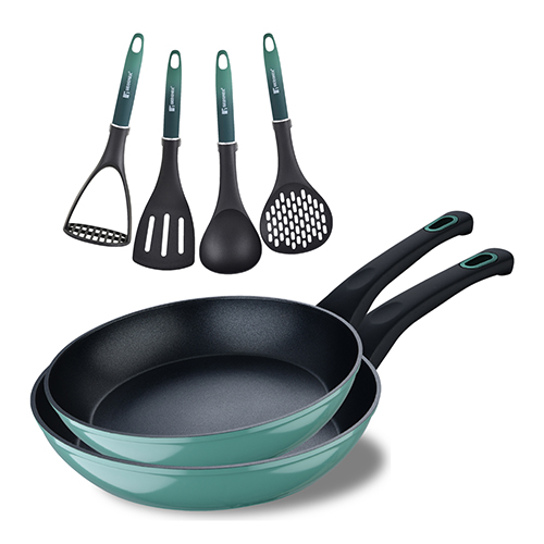 SET 2PC COOKWARE ALUMINIO FORJADO IND y 4PC UTENSILIOS DE COCINA PBT VERDE CLASSIQUE BG