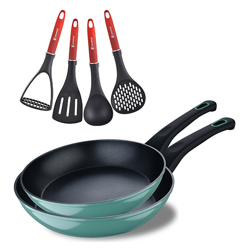 SET 2PC COOKWARE ALUMINIO FORJADO IND y 4PC UTENSILIOS DE COCINA PBT VERDE CLASSIQUE BG