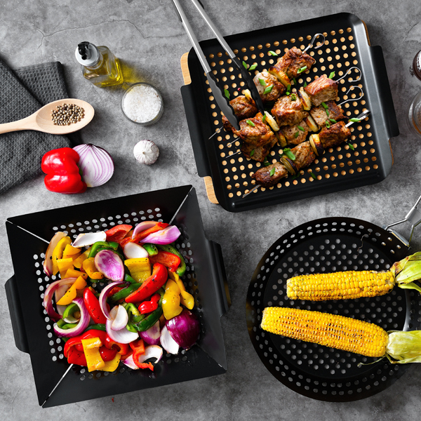 ASADOR 43X23X1.5CM HIERRO FUNDIDO NEGRO MATE C/ 2PZS OREJA SILICONA LÉKUÉ