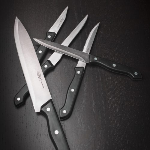 San Ignacio Toledo – Cuchillo Multiusos 12.5 cm, Acero Inoxidable, Amplia Superficie y Largo Filo, Seguro y Fácil de Agarrar, Dispone de un Mango Ergonómico Termoplástico con Pasadores en Negro