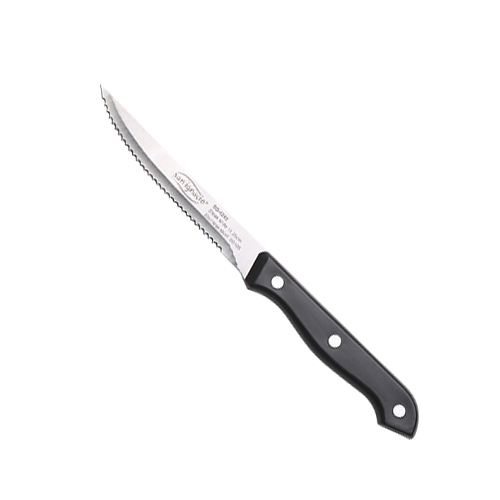 San Ignacio Toledo – Cuchillo Chuletero 11.25 cm, Acero Inoxidable, Amplia Superficie y Largo Filo, Seguro y Fácil de Agarrar, Dispone de un Mango Ergonómico Termoplástico con Pasadores en Negro