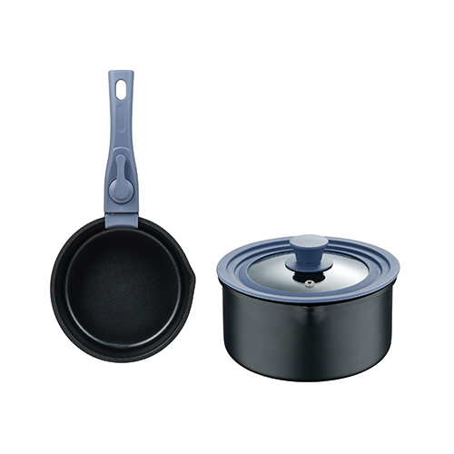 SET 4PCS CAZO: 1 CAZO 16X8.2CM + 1 CAZO 20X10.2CM + 1 MANGO DESMONTABLE + 1 TAPA DE SILICONA (16-18-20CM) ALU MEDITERRANEA SG
