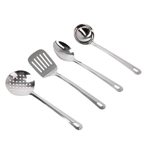 JUEGO 4PZS UTENSILIOS DE COCINA: CUCHARA DE COCINA 31.5CM + CUCHARON 30.5CM + ESPUMADERA 32CM + ESPATULA RANURADA 33CM ACERO INOX SKAGEN SG